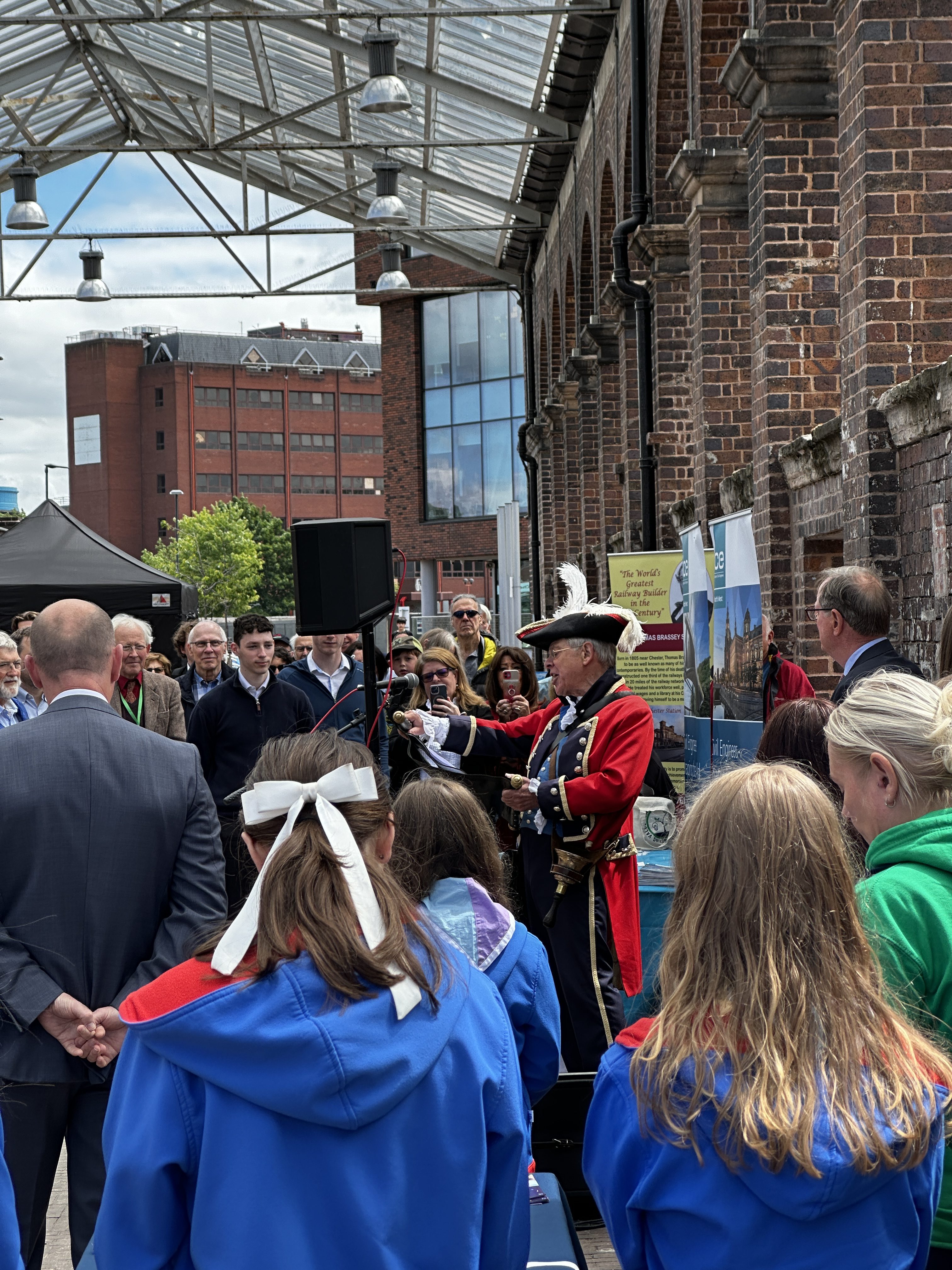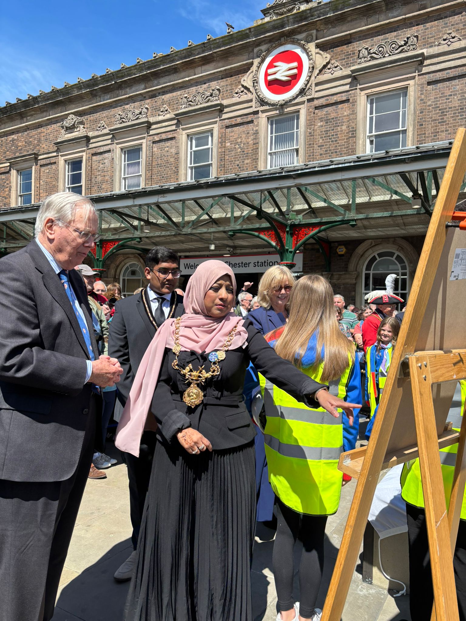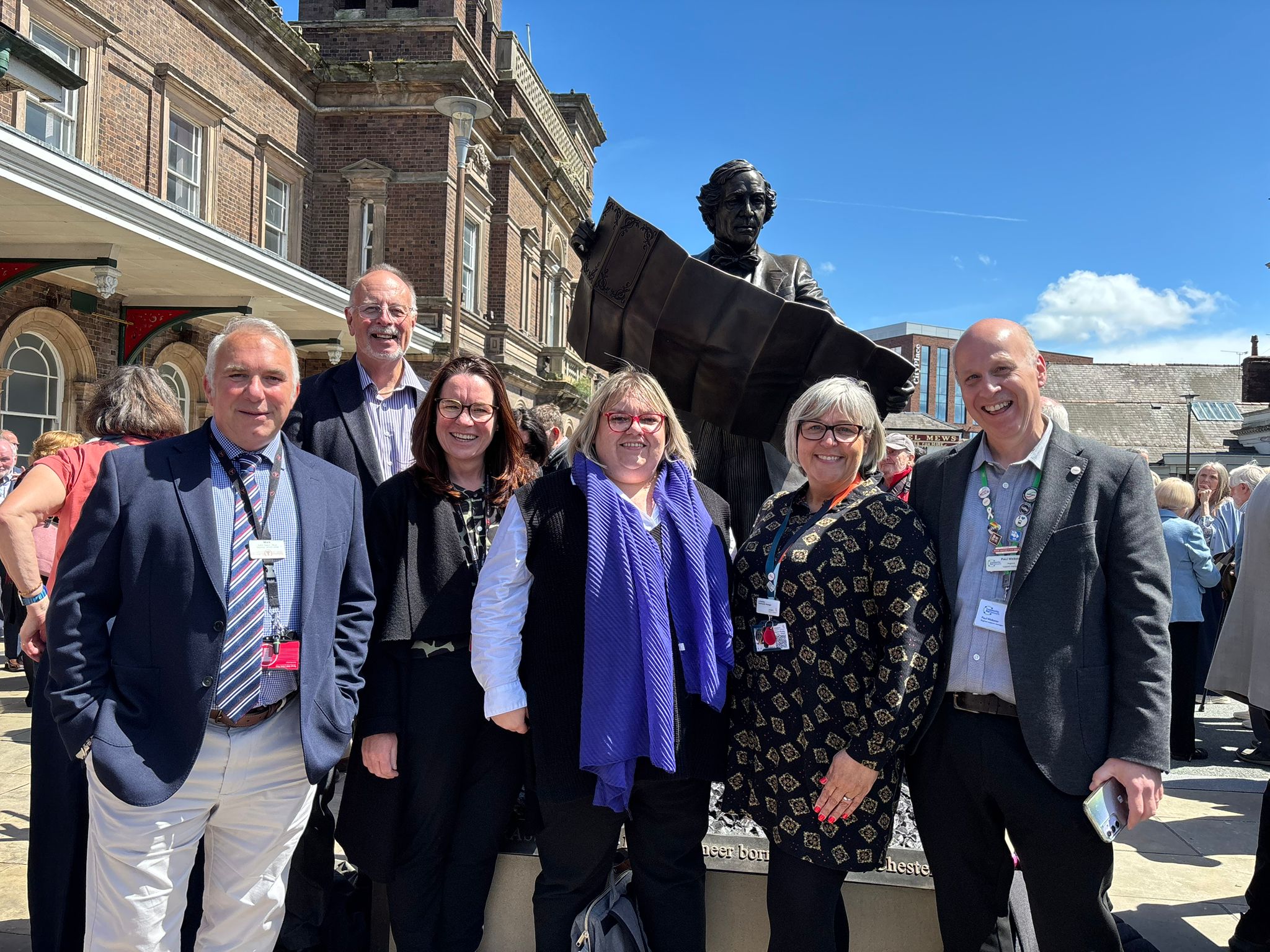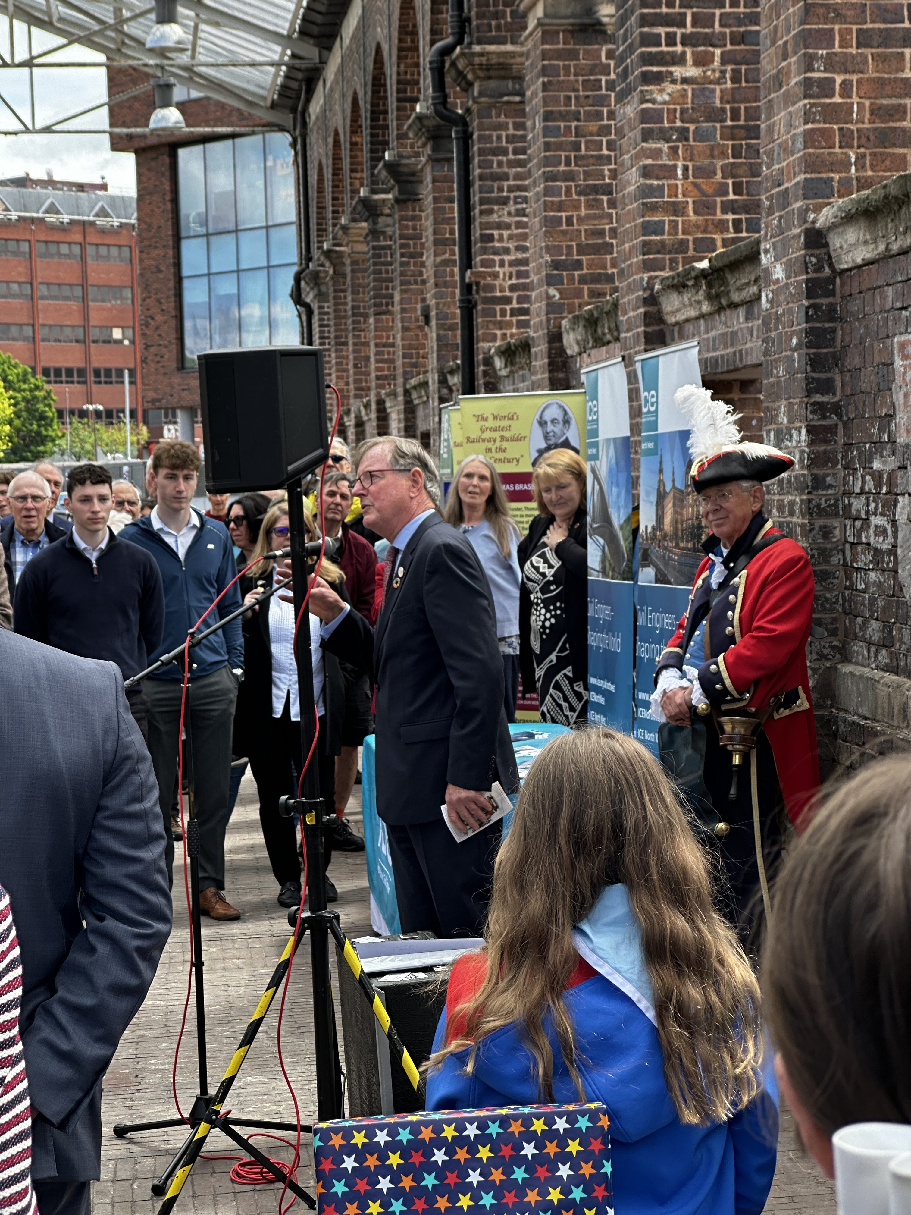 Gosod parhaol cerflun o orsaf reilffordd Caer, lle Brassey yn cael uniongyrchol effaith hanesyddol.